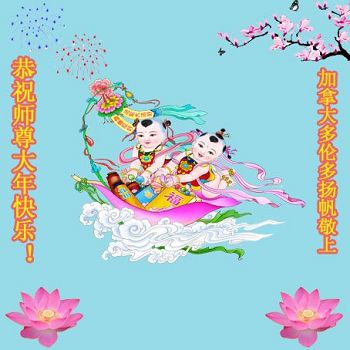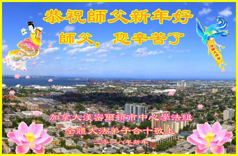 师父,您辛苦了! 我们唯有实修自己,抓紧时间多救人以报师恩! 加拿大汉密尔顿市中心学法组全体大法弟子合十敬上 加拿大多伦多大法弟子恭祝慈悲伟大的师尊新年好!