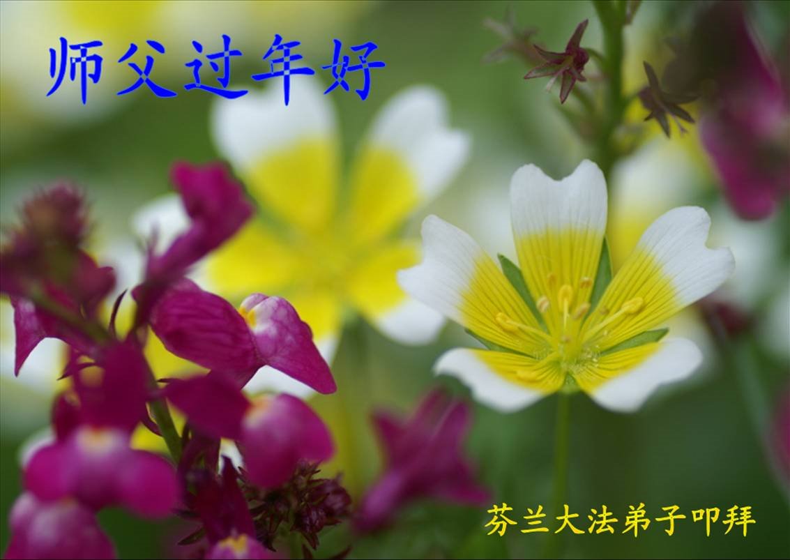 法正人间 邪恶癫狂末路了, 春回大地绿满梢, 心怀众生践誓约, 迎来繁花满枝笑。 荷兰大法弟子叩拜恭祝慈悲伟大的师尊新年好!