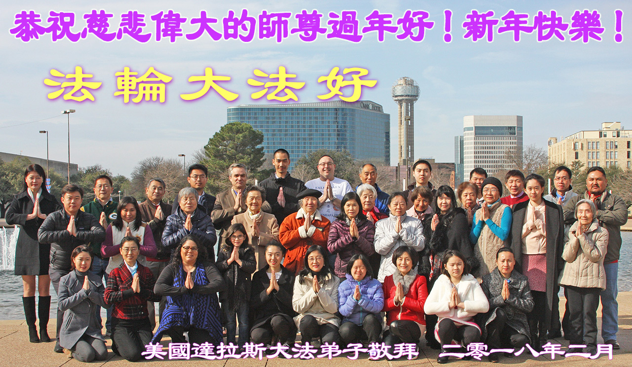 弟子做好三件事,紧跟师尊回家。 弟子叩拜师尊! 美国达拉斯大法弟子恭祝慈悲伟大的师尊过年好!新年快乐!