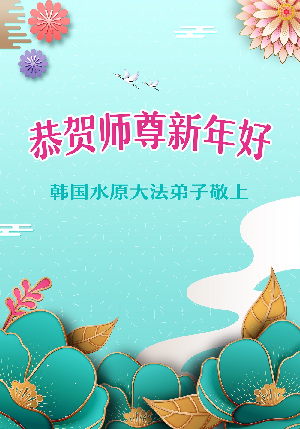 师尊辛苦了!弟子会努力修炼,去掉执着,同时配合同修救度众生。 敬谢师尊救度洪恩! 韩国安山市全体大法弟子祝师尊新年快乐!