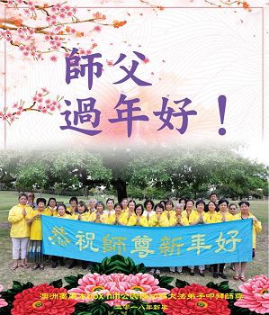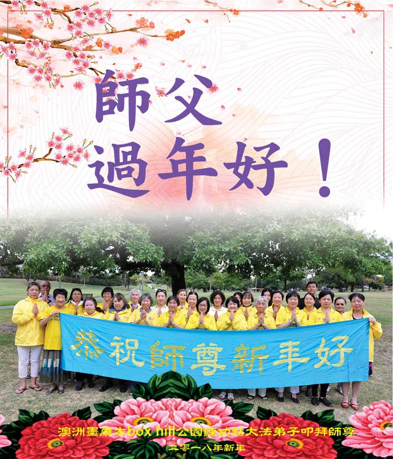 师父过年好!弟子对师尊的感恩无以言表,唯有精進、精進、再精進,兑现史前的誓约。弟子叩拜师尊! 澳洲阿德莱德市全体大法弟子恭祝师父新年好!
