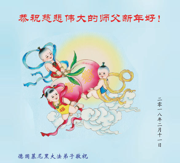 尊敬的师父:您好!在师尊救度苍穹、法正万宇的伟大正法中,新的一年来临了。值此辞旧迎新之际,法国大法弟子在无限感恩中向慈悲伟大的师父拜年!恭祝师父新年快乐!法国大法弟子合十敬拜! 感念师恩 云消雾散定乾坤 旷宇苍穹转法轮 慈悲救度开天地 浩瀚师恩万古尊 德国慕尼黑大法弟子恭祝慈悲伟大的师父新年好!