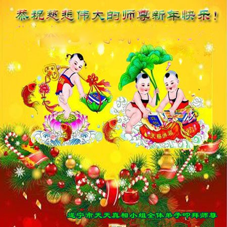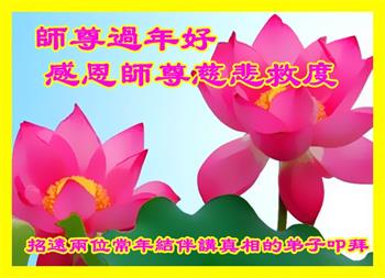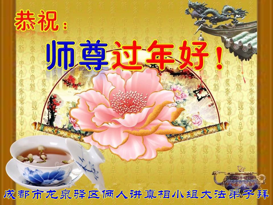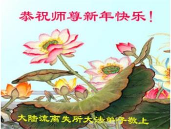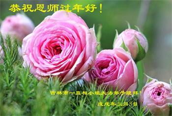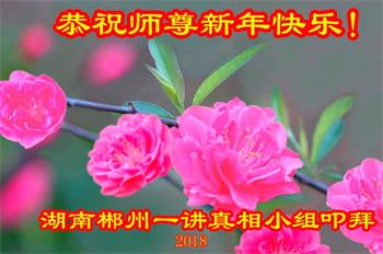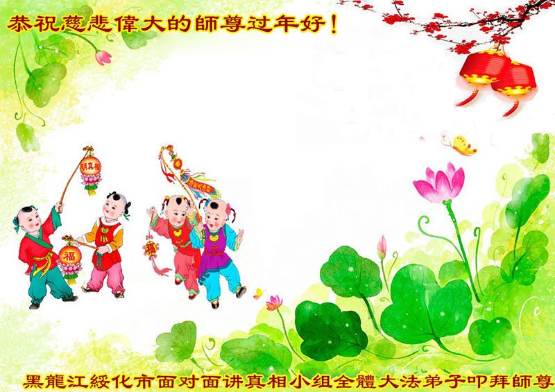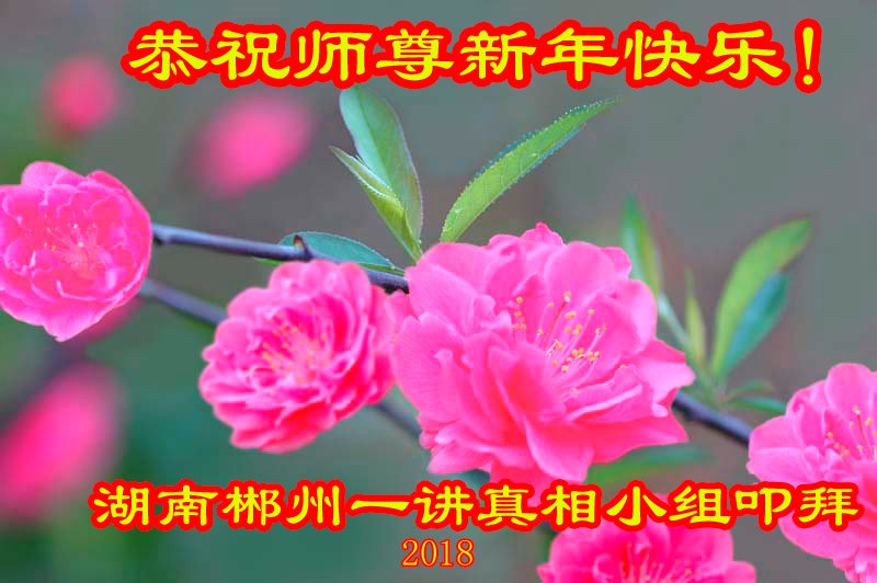 | 【明慧网二零一八年二月十五日】(明慧网记者综合报道)十八年来在中共迫害的严酷环境中,法轮大法弟子们用他们慈悲的心,在师尊的保护下,无论瑞雪纷飞,还是烈日高照,走村串户把大法的真相传到千家万户。越来越多的民众不再被谎言迷惑,明白了“法轮大法好!真善忍好!” 二零一八年传统新年到来,大法弟子们把他们的感恩寄给师父,恭祝李洪志师父过年好! 四川遂宁市“天天真相”小组全体大法弟子说:“我们全体弟子坚持天天面对面向世人讲真相、发资料,贴粘贴,把法轮大法的美好传给我们身边的有缘人。” 山东烟台招远常年结伴讲真相两位大法弟子说:“每天走在师尊为我们铺垫好的救人的正法路上,处处、时时、事事都能感受到师尊的慈悲伟大呵护和鼓励:遇到魔难时,是师尊给我们化解,能使我们坦荡面对;当看到世人明真相感谢大法救度的激动心情时,我们也会被感动的泪流满面。” 吉林省长春市一学法小组祝师尊新年快乐!讲真相,救人忙 走村串户真相传 助师正法苦也甜 一家就像一个店 一户就是一片天 他们都把真相盼 轮回转生几千年 明白那面泪满面 双手合十跪师安 都说法轮大法好 报名三:退.保平安 天亮之前都退店 结账了愿把家还 三:退.名单一大串 层层众生层层天 师父正法一结束 都能跟师上法船 黑龙江绥化市面对面讲真相小组全体大法弟子恭祝师尊过年好!叩拜师尊!山东烟台招远常年结伴讲真相两位大法弟子恭祝慈悲伟大的师尊过年好!每天走在师尊为我们铺垫好的救人的正法路上,处处、时时、事事都能感受到师尊的慈悲伟大保护和鼓励:遇到魔难时,是师尊给我们化解,能使我们坦荡面对;当看到世人明真相感谢大法救度的激动心情时,我们也会被感动的泪流满面…… 感谢师尊的佛恩浩荡!我们一定不负师尊的重托,多救人,兑现自己的誓约! 感恩师尊!叩拜伟大的师尊! 大陆流离失所十五年的大法弟子给师父拜年了!师父新年好!新年快乐!师父您辛苦了! 净莲不一般 隐居在深山 小花朵朵开 了愿到人间 流离十五年 悲苦也有甜 最后越精進 圆满随师还 四川遂宁市天天真相小组全体弟子恭祝师尊新年好!恭祝慈悲、伟大的师尊:新年好!新年快乐!值此二零一八年中国新年到来之际,我们“天天真相小组”全体弟子满怀喜悦、激动的心情遥祝师尊万事如意!在过去的一年里,我们全体弟子坚持天天面对面向世人讲真相、发资料,贴粘贴,弟子们圆容配合,形成坚不可摧的整体,把法轮大法的美好传给我们身边的有缘人,在师尊的加持下,使众多世人明白了真相,得到了大法的救度! 新年伊始,宇宙正法已近尾声,请师尊放心,我们一定会坚持静心学法,多去执著,互相配合圆容,更加努力做好三件事,多救世人,担当起救度众生的历史重任,绝不辜负师尊对我们的殷切希望,再次感谢师尊对我们的慈悲救度!下面是弟子们敬献给师尊的诗: 众生之福 浩瀚苍宇是谁造 带着如意真理来 跳梁小丑蛤蟆精 你讲真相我粘贴 佛道神仙知多少 冲破阻力不畏难 嫉火攻心害众生 齐心协力捣妖穴 创造三界为了啥 横扫烂鬼正大穹 大法弟子讲真相 恶人见了吓破胆 众神聚焦摆战场 乱法小鬼跑不脱 法力无边破谜障 好人见了双手接 大法真相传万家 二零一八新年到 平安吉祥满中华 五洲四海闻大道 春风拂面格外爽 喜气洋洋做年糕 诚念法轮大法好 莺歌燕舞好热闹 腊梅飘香笑风雪 双手合十献师尊 逢凶化吉命能保 天涯海角法光照 风流人物看今朝 弟子略把心意表 千言万语诉不尽 师恩悠悠化天地 想念师尊泪雨飞 春回大地迎师归 山东省潍坊市临朐县农村大法弟子恭祝师尊新年好!我们地区能够坚持集体学法,整体交流提高,坚持到集市上、走街串户发资料、讲真相,救度有缘人,稳健走好、走正最后的路。敬请师尊放心! 山西太原一项目组大法弟子敬祝慈悲伟大的师尊新年快乐!黑龙江省绥化市一项目组大法弟子恭祝慈悲伟大的师尊戊戌年新年快乐!弟子们牢记师尊教诲,勇猛精進,救度众生;愿师尊多一份欣慰,少一些操劳。 东北安装新!唐!人:一项目组大法弟子恭祝慈悲伟大的师尊新年快乐!网门项目组全体大法弟子愿慈悲伟大的师父新年快乐!用心敬献给师父一张新年,愿慈悲伟大的师父新年快乐! 弟子们一定不负师父的洪大恩泽,发挥整体的作用。互相配合,互相帮助,共同精進,多学法,学好法,按法的要求去做,真正的修自己,去人心,有问题,有矛盾向内找,抓紧时间多救人,兑现史前的誓约,一定珍惜这万古机缘,珍惜这修炼的机会,圆满随师还。 网门项目组全体弟子 叩拜师尊 哈尔滨香坊项目组大法弟子恭祝师尊新年好!吉林市一真相小组大法弟子恭祝恩师过年好!恭祝恩师过年好! 吉林市一真相小组大法弟子跪拜! 吉林市一真相小组大法弟子跪拜,恭祝恩师过年好!湖南郴州一讲真相小组恭祝师父新年快乐!湖南郴州一讲真相小组叩拜 吉林省蛟河一讲真相小组大法弟子恭祝师尊新年好!四川成都市龙泉驿区俩人讲真相小组大法弟子恭祝师尊过年好!四川成都市龙泉驿区四人讲真相小组大法弟子恭祝师尊新年快乐!乳山大法弟子恭祝师父新年好!山东威海乳山一讲真相小组大法弟子给师父拜年,恭祝师父新年快乐! 河北省唐山市乐亭县全体大法弟子敬祝师尊新年快乐!又迎来新的一年,也是正法進程新的一年。一路走来,去掉的是执着,迎来的是心性与境界的升华,除掉