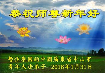 暂居泰国曼谷的广东大法弟子恭祝师尊新年快乐! 在泰国的中国广东省中山市青年大法弟子恭祝师父新年好!