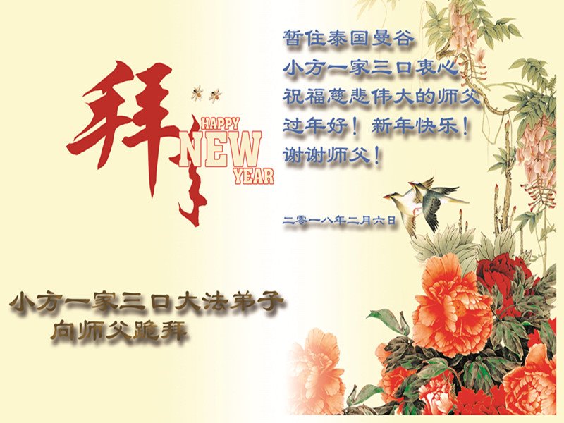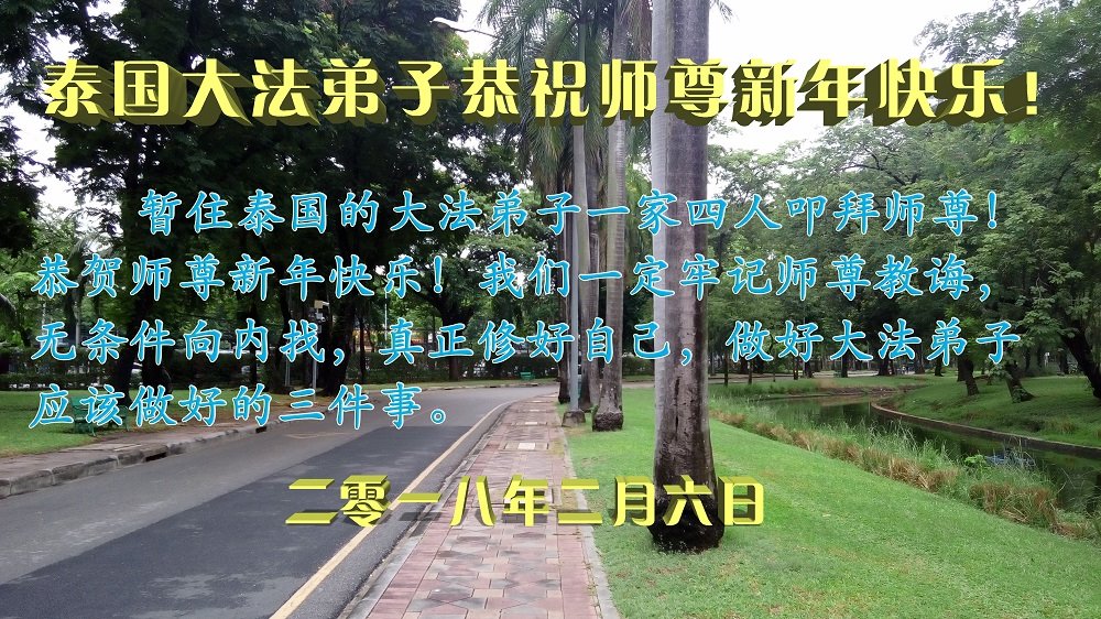 【明慧网二零一八年二月十五日】 泰国曼谷某公寓大楼大法弟子恭祝师父过年好!