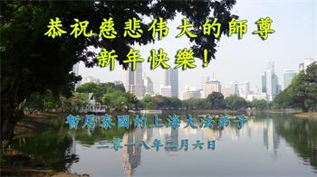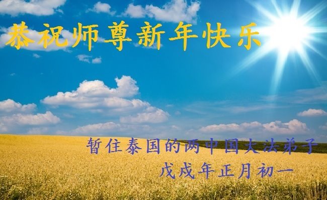 在泰国的中国广东省中山市青年大法弟子恭祝师父新年好!弟子一定精進实修,做好三件事,不辜负师父的慈悲苦度。 暂居泰国的江苏大法弟子恭祝师尊新年快乐!