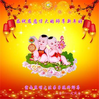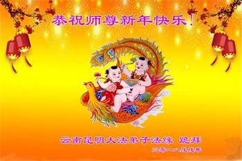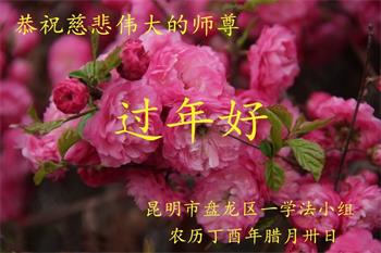 云南昆明大法弟子恭祝慈悲伟大的师父新年快乐!