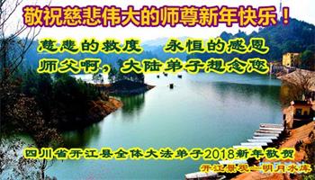 【明慧网二零一八年二月十五日】 四川省达州市开江县山区大法弟子恭祝伟大师尊新年快乐!