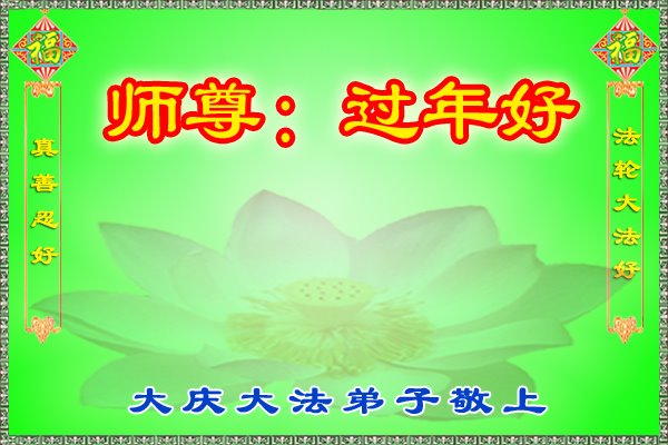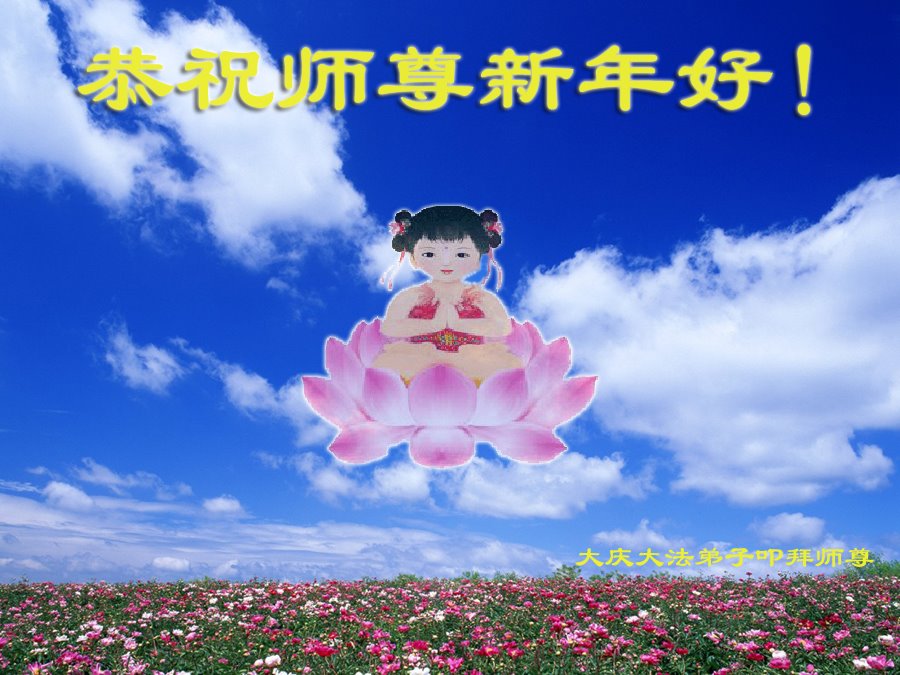 师父啊,您为众生、为众弟子操尽了心,弟子悟性差,让师父多操不少心,师父呵护我二十一年了,没吃过一粒药。弟子没有可回报的,除了精進,多救众生外,就是渴望师父能轻轻松松,快快乐!乐的过新年 。弟子在远方发自肺腑的喊一声:慈悲伟大的师父新年好!跪拜! 大庆乙烯大法弟子 黑龙江省大庆祥阁大法弟子给师父拜年!