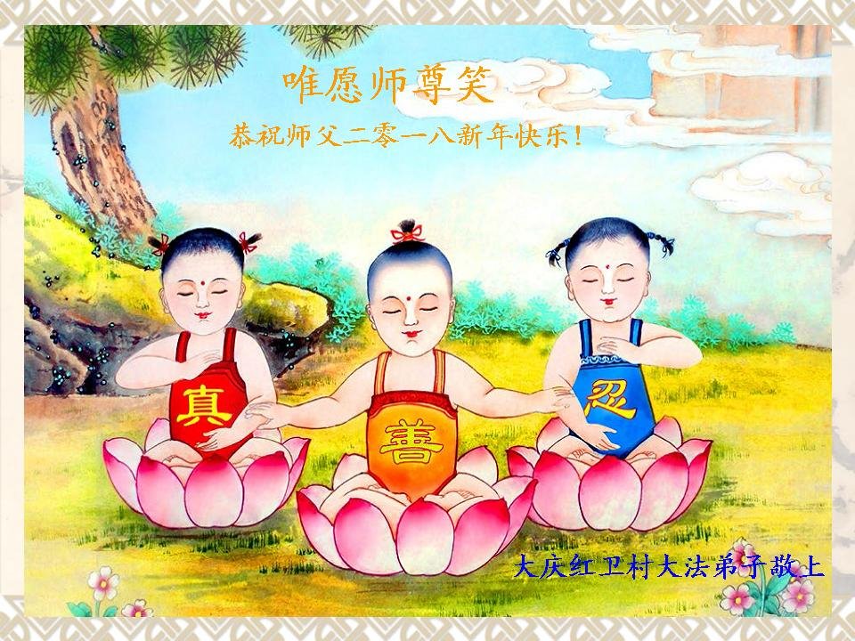 师尊: 您为弟子操尽了心,弟子深感惭愧,唯有精進实修,做好师父要求的三件事,让师父少一份操劳,多一些宽慰。在新年到来之际,惟愿师尊开心快乐! 大庆市红卫村大法弟子敬上 二零一八年二月十一日 黑龙江省大庆红卫村全体大法弟子恭祝师尊新年快乐!师尊辛苦了!