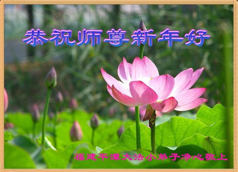 师父您过年好!我是大法小弟子,我现在长大了。感谢师父让我有缘得大法!我一定好好学法,我知道我现在的一切都是师父的安排,我一定会为以后能更好的助师正法而努力!努力达到师父的要求。谢谢师父! 合十! 沈阳市沈北新区全体大法弟子给慈悲伟大的师父拜年!恭祝师父新年好! 沈北新区全体大法弟子恭祝慈悲伟大师父您过年好!时光流转,转眼又一年!我们很想念师父!在新的一年里我们将一如既往的,做好三件事;修好自己,不枉师父的慈悲苦度! 叩谢师恩! 合十 |