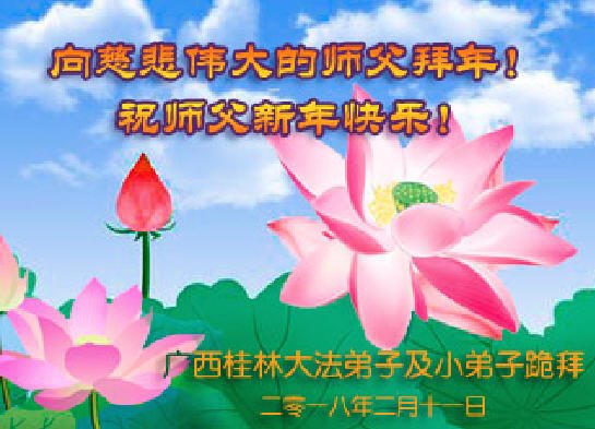 在新的一年里,坚持学法背法,克服懈怠状态,走回修炼如初的状态,做好三件事,随师还。 广西桂林大法弟子及大法小弟子恭祝师父新年快乐!