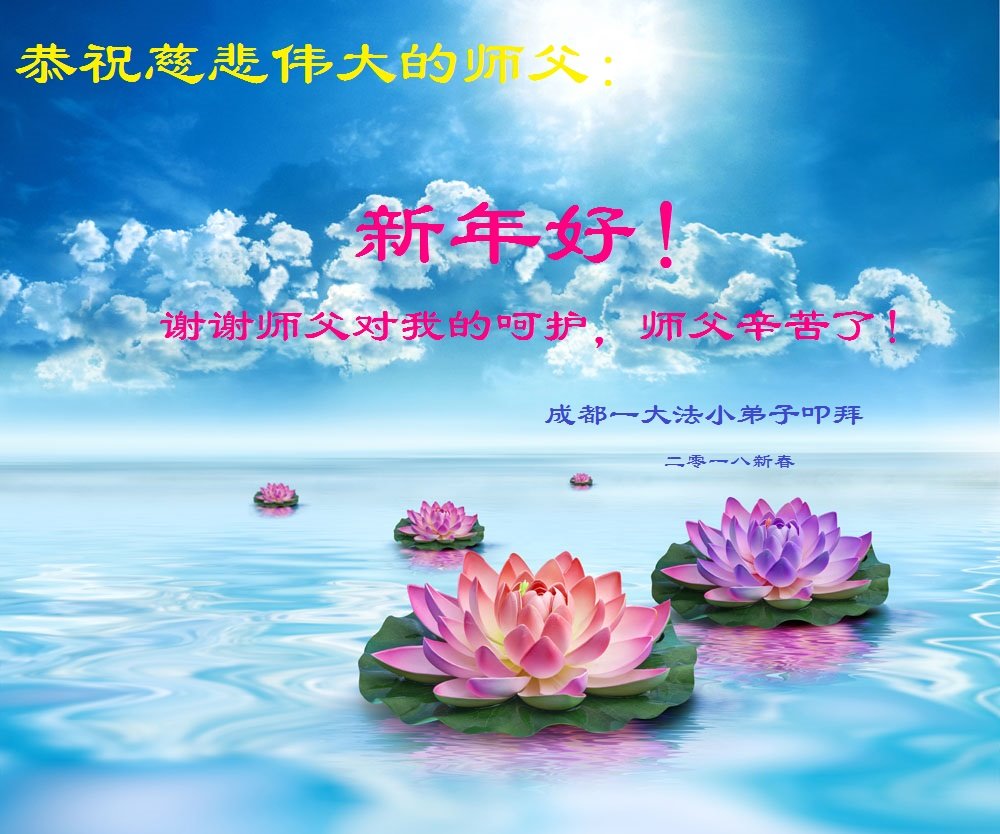 一小弟子祝师尊大年快乐! 弟子合十拜谢师尊。 辛集市一大法小弟子敬拜 四川省成都一大法小弟子恭祝慈悲伟大的师父新年好!