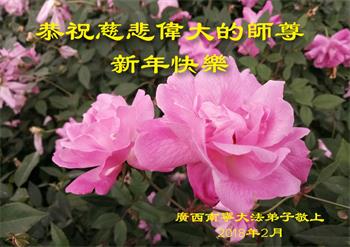 新的一年又到来了,广西玉林市全体大法弟子祝师父新年快乐! 广西南宁市大法弟子恭祝慈悲伟大的师尊新年快乐!