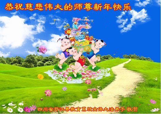 四川省达州市开江县教育系统全体大法弟子恭祝慈悲伟大的师尊新年快乐!