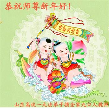 山东高校一大法弟子携全家九口人恭祝师尊过年好!