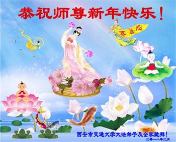 河北省衡水饶阳教育系统大法弟子恭祝师父过年好!师父辛苦了!叩拜师恩! 陕西西安市交道大学大法弟子及全家恭祝师尊新年快乐!