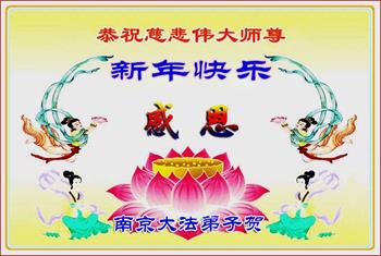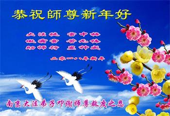 江苏省南京地区的大法弟子祝愿我们伟大的师尊新年快乐!