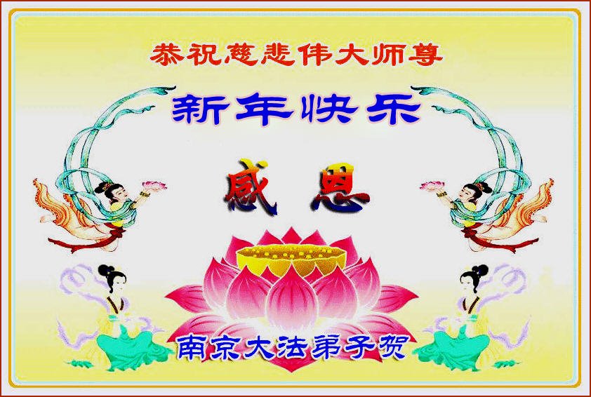 慈悲伟大的师父辛苦了!感恩师父慈悲苦度。江苏南京一学法小组所有大法弟子恭祝师父新年快乐! 江苏淮安大法弟子恭祝师父新年快乐!