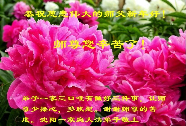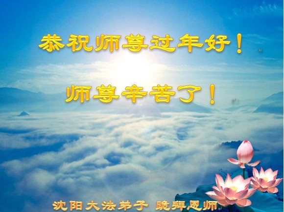 在这新的一年来临之际,弟子代表家人给师尊拜年!:祝师尊新年快乐!感谢师尊,师尊辛苦了! 辽宁省沈阳大法弟子恭祝师尊新年快乐!