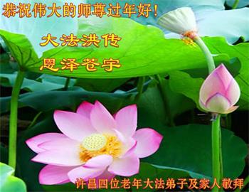 谢谢师尊的一路呵护,弟子唯有精進报师恩! 河南许昌四位老年大法弟子恭祝师尊新年快乐!