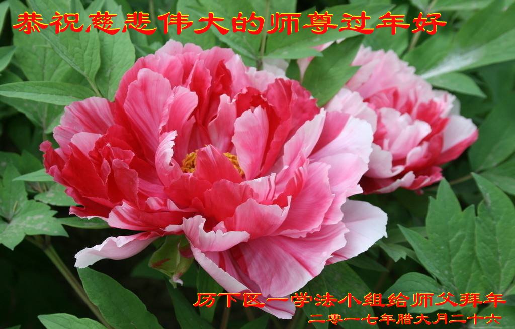 济南大法弟子全家恭祝慈悲伟大的师尊: 过年好! 师尊辛苦了! 山东省济南市历下区一学法小组大法弟子给师父拜年!