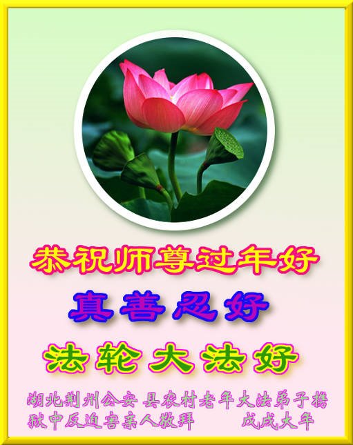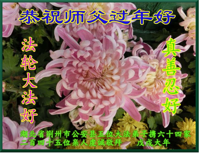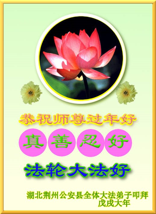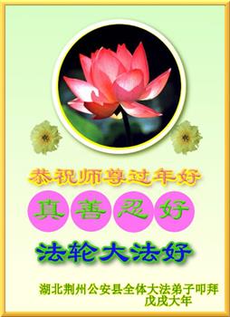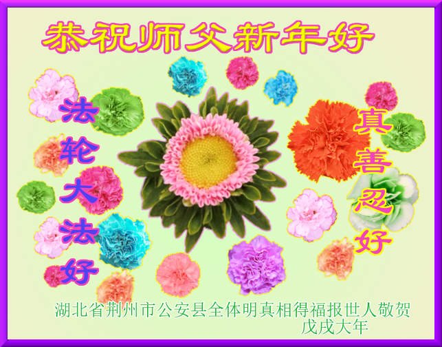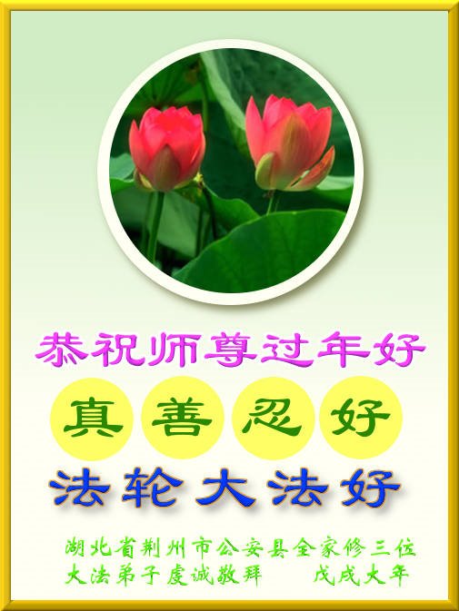 请师父放心,我们一定形成强大的整体,踏踏实实的修好自己,多发正念,多救人! 湖北省荆州市公安县全体大法弟子恭祝师尊过年好!