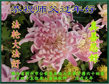 湖北省荆州市公安县五位大法弟子携六十四家二百四十五位亲人恭祝师父过年好!