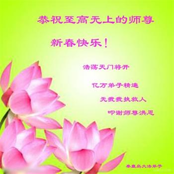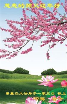 在这新的一年到来之际,我们大法弟子非常想念师父,急切的盼望能早日与师父在大陆团聚。 我们一定在最后的时间做好大法弟子应该做的事,刻苦修炼,早日功成圆满,不辜负师父的苦度,和师父一同回家。 恭祝师父新年愉快! 叩谢师恩 河北秦皇岛市一学法小组大法弟子 河北秦皇岛市青龙县一家庭学法小组两位大法弟子携全家恭祝师尊过年好!