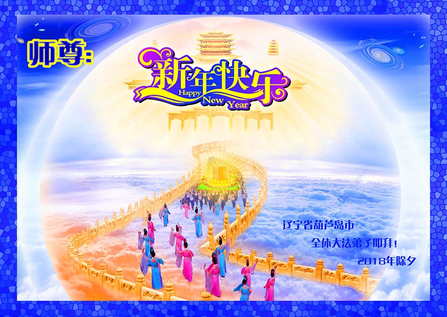 恭祝慈悲伟大的师尊新年快乐!师尊您辛苦了!师恩浩荡! 感恩师尊的慈悲苦度。 辽宁省葫芦岛市新区一大法弟子叩拜! 合十 辽宁葫芦岛市大法弟子恭祝师尊新年快乐!