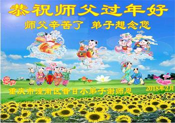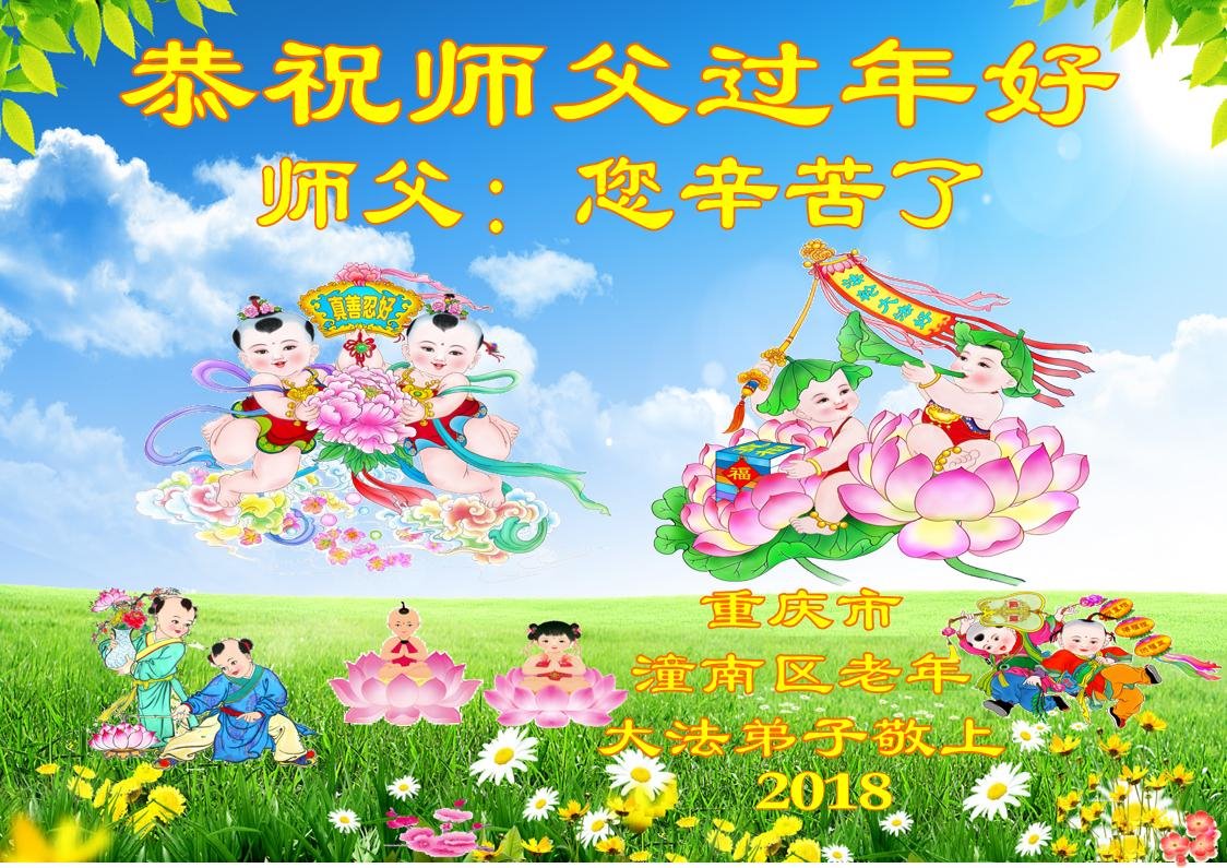 2018年中国新年将至,重庆市綦江区全体大法弟子,向慈悲伟大的师尊致以最崇高的敬意,师尊新年好!无比感谢师尊的慈悲苦度! 大法弟子无论在哪里都会是大法的一个粒子,都会放射出光焰无际神的正念,大法弟子做的正就是在世间树立起了一座座正念正行正信的丰碑。不辱使命,跟师尊走,做好正法时期大法弟子的三件事! 再次问候 师尊新年好! 重庆市綦江区全体大法弟子敬上 重庆江北区一大法弟子恭祝师尊新年快乐!