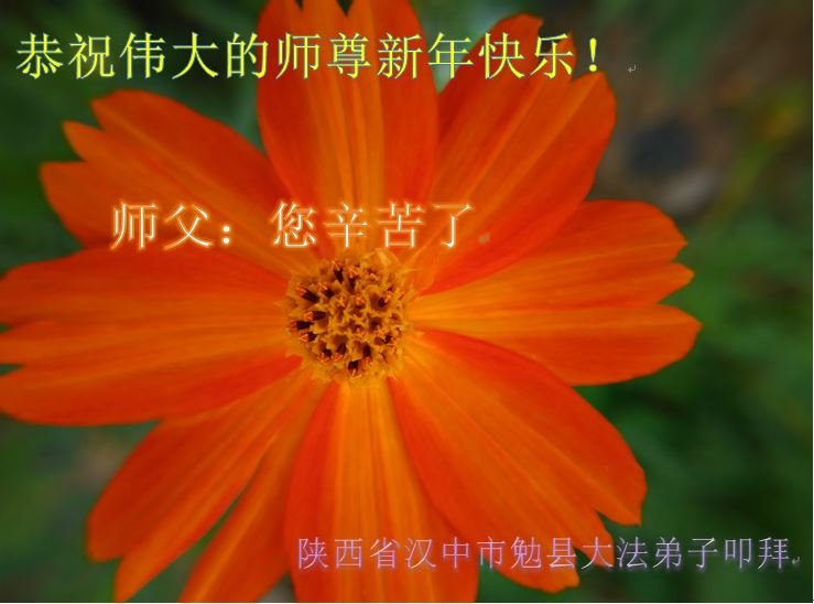 感谢和珍惜师父给了我们这千载难逢的机遇,在新的一年里,弟子们一定听师父的话,珍惜延长来的时间,多学法,实修自己,做好三件事,不辜负师父的慈悲苦度!完成自己的使命,早日与师尊团圆。再一次向师父致衷心的祝贺!弟子跪谢师恩,给师父拜年。 陕西省宝鸡市高新区大法弟子恭祝慈悲伟大的师父过年好!