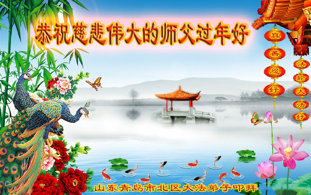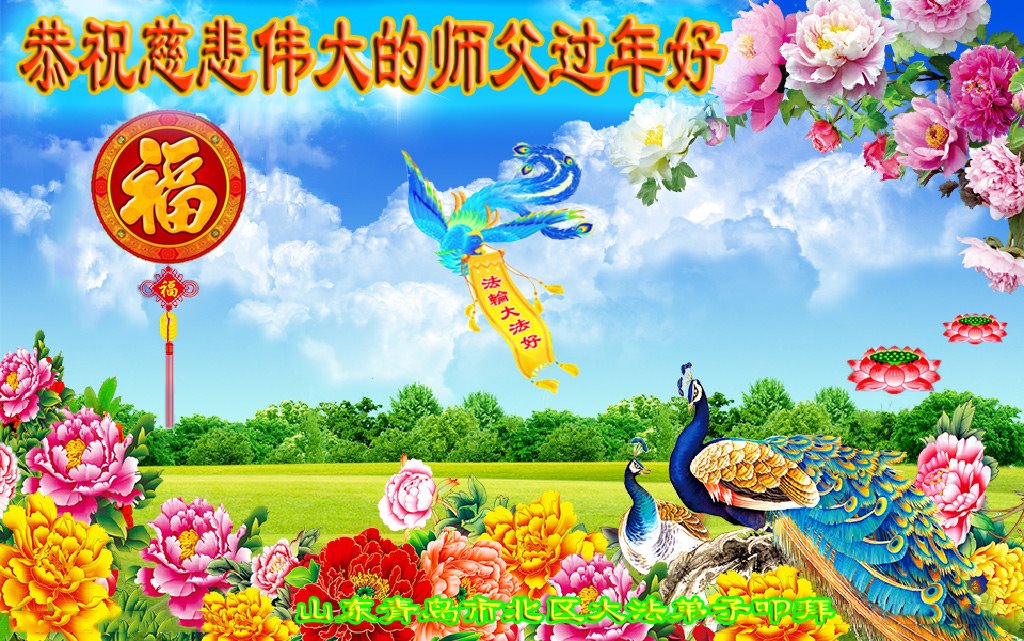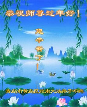 恭祝师父过年好! 师父您辛苦了! 感恩师父慈悲救度! 山东省青岛市市南区一学法小组恭祝伟大慈悲的师尊新年快乐!
