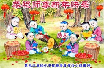 新年来临之际,弟子及家人给师尊拜年,恭祝师尊过年好! 师父您辛苦了!您为了挽救苍宇及众生,吃了无数的苦,遭了无数的罪,为了我们这些弟子操碎了心,我们无以回报师恩,只有修好自己,抓紧时间多救人,做好三件事,不辜负师尊对众生的慈悲救度与期盼。 黑龙江省大法弟子恭祝师尊新年好!