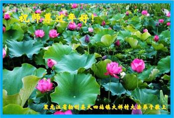 师尊的功德 师尊再造新宇宙 包罗万象新宇成 新天新地日月星 人听真相心自明 世界需要真善忍 众生喜学法轮功 众生得救心欢喜 众生喜爱法轮功 众生進入新宇宙 佛光普照礼仪明 师尊和亿万莲花结缘 师尊高层宇宙行 传法结缘度众生 亿万法徒学大法 心学大法助师成 强大正念灭恶尽 快讲真相救众生 待到功成圆满日 亿万莲花开天庭 黑龙江省勃利县大四站镇大祥村大法弟子敬上 黑龙江省黑河市孙吴县大法弟子及不修炼的家人一起恭祝慈悲伟大的师父新年快乐!