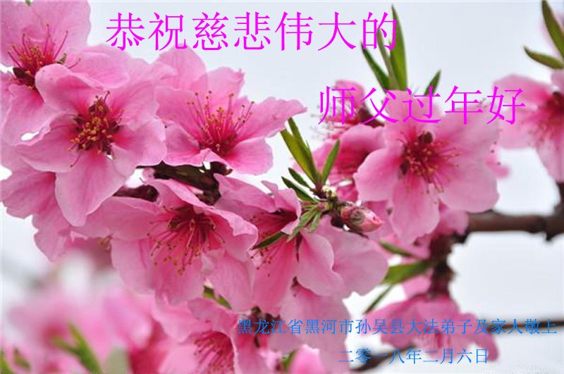黑龙江省黑河市孙吴县大法弟子及不修炼的家人一起给师父拜年!恭祝慈悲伟大的师父新年快乐!师父过年好!师父多年对弟子的教诲,弟子牢记在心,做好三件事,多多救人。 黑龙江省七台河市桃山区大法弟子恭祝师尊新年好!