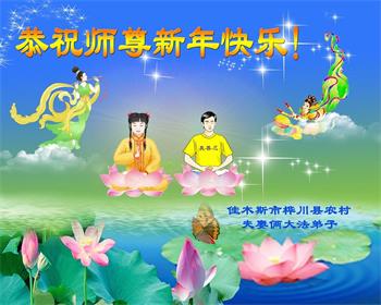 黑龙江省佳木斯市桦川县四马架夫妻两大法弟子恭祝师尊新年快乐!