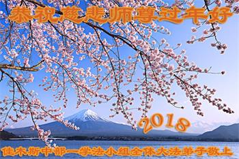 值此二零一八年新年到来之际,我们小组全体大法弟子及家属恭祝慈悲伟大的师父新年好!在正法的最后日子里,我们一定要更加精進,多多救人,按师父的要求,做好大法弟子应该做的三件事。放下人心的执着,圆满随师还!敬谢师恩!