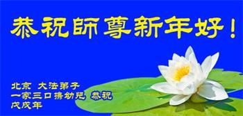 北京大法弟子一家三口携幼儿恭祝师尊新年好! 北京海淀一大法弟子恭祝慈悲伟大的师尊新年快乐!
