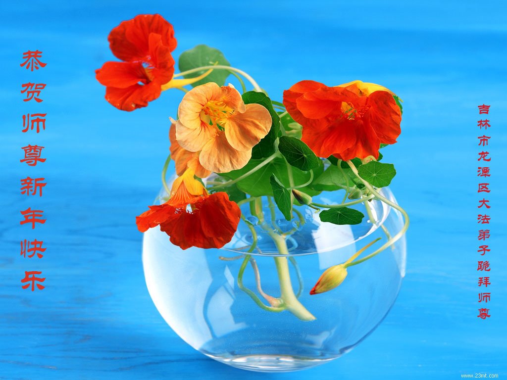 新年谢师尊 新宇谢师恩 新天谢师心 新境谢师音 环宇齐赞颂 环球皆承奉 万事依法溶 众生心开宏 随师数十载 弟子无由缓 感泪大法路 感恩师尊护 新年新气象 新年新模样 秉承师尊诲 定兑誓愿归 同修众生路 同启新宇辉 万众一心顾 同创大宇威 吉林市两个小组11名大法弟子恭祝师尊新年快乐!