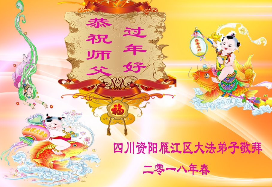 师父:过年好!弟子们想念师父!祝师父新年快乐! 四川资阳雁江区大法弟子给慈悲伟大的师尊拜年!