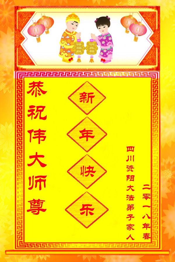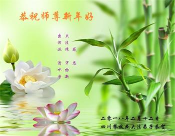 慈悲伟大师父好! 姐妹俩大法弟子感恩师尊的慈悲苦度。弟子一定在新的一年里严格要求自己,认真学法,事事对照;修好自己,做好三件事。 四川乐山市全体大法弟子给师父拜年!