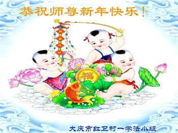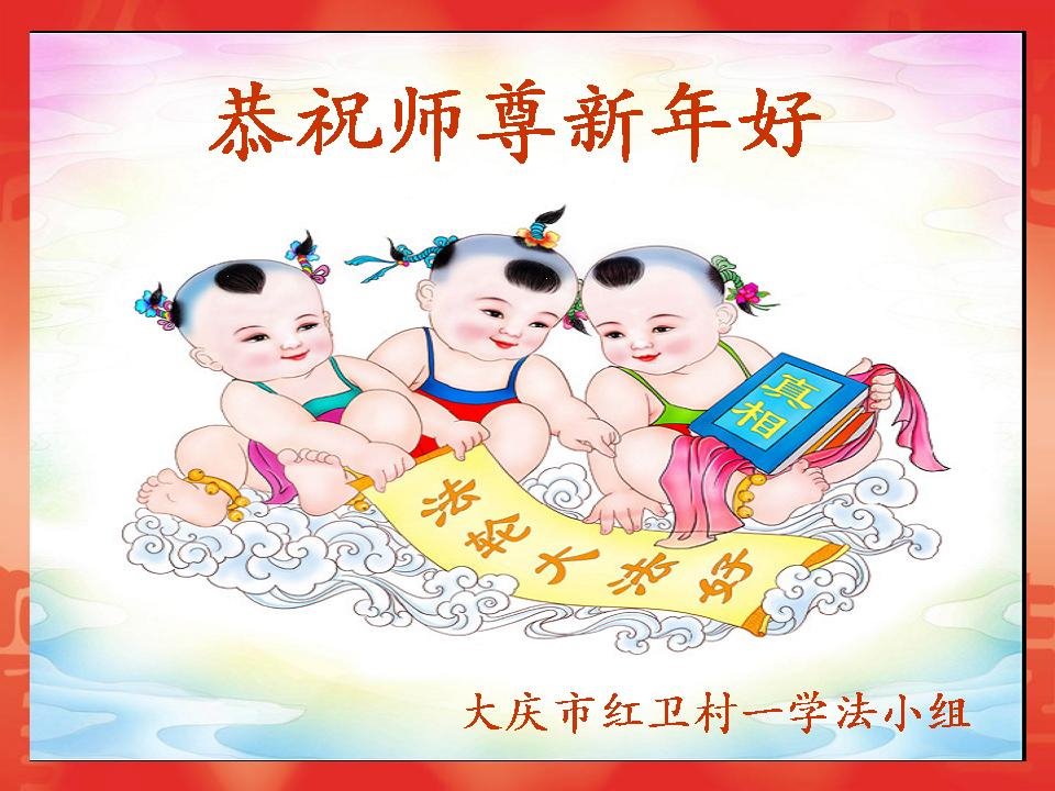黑龙江省大庆红卫村一学法小组恭祝师尊新年快乐!