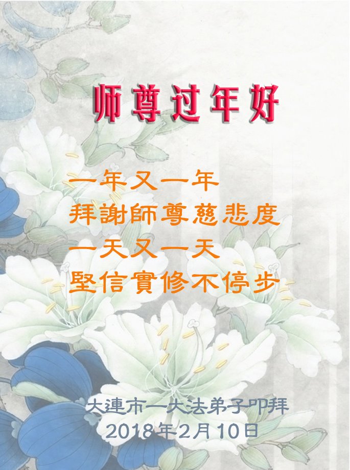 【明慧网二零一八年二月十五日】 大陆大法弟子及明真相亲属和众生向师尊恭祝师尊过年好!恭祝师父新年快乐!