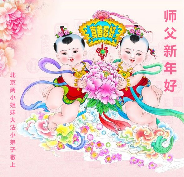 我是大法小弟子,每当过年、过节的时候,我都会想起伟大的师父,前几天就告诉爷爷别忘了问候师父新年好!我衷心祝愿师父过年好!请师父放心,我会做好我应该做的。 四川省成都市青白江区姐妹俩大法小弟子恭祝慈悲伟大的师父新年好!