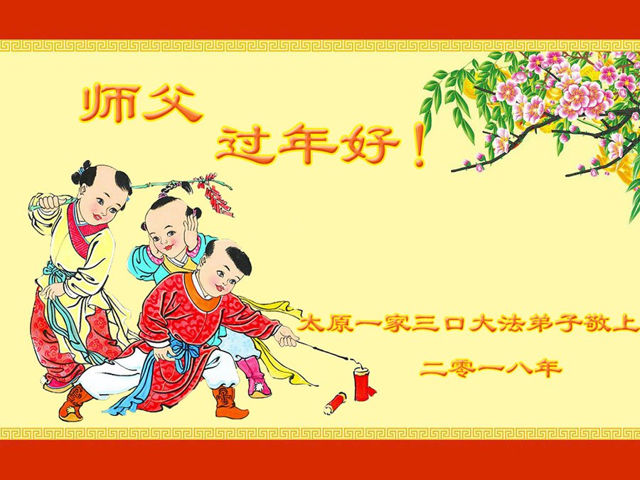 山西省太原一全家大法弟子及家人向师父拜年!跪拜敬贺慈悲伟大的师尊新年快乐!