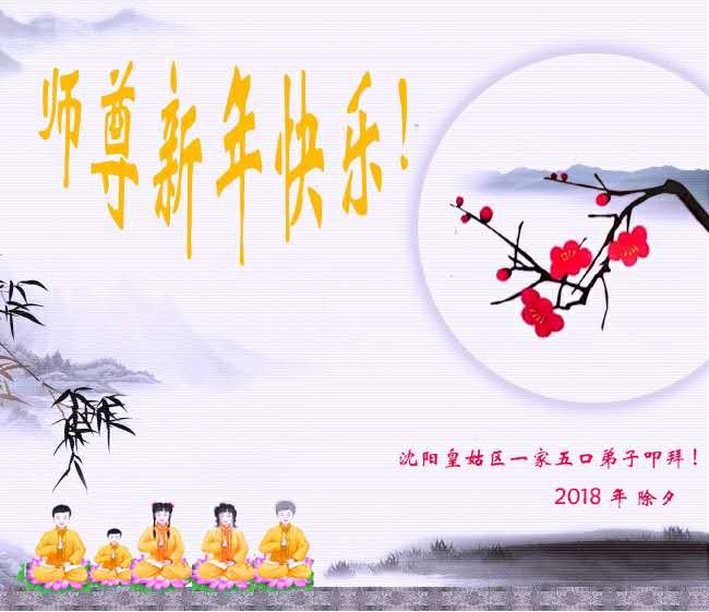 【明慧网二零一八年二月十五日】 辽宁省沈阳一大法弟子恭祝慈悲伟大的师尊新年好!