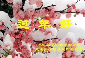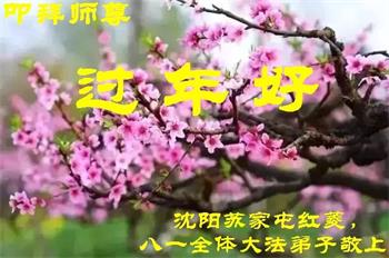 感恩师尊重塑再造救度之恩!师尊多次为相信法轮大法好八十三岁的父亲承担、消减病业,延长寿命。 我们全家跪拜恭祝师尊过年好! 辽宁省沈阳市一学法小组全体跪拜恭祝慈悲伟大的师尊过年好!