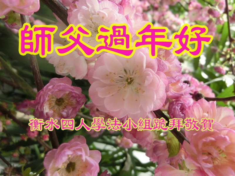 伟大慈悲的师父: 在举国欢度新年佳节之际,我们给师父拜年! 在正法進程最后的伟大关键时刻,我们要牢记师尊的教诲,要坚持做到坚信师父,坚信大法,要坚持多学法,学好法;要坚持快救人,多救人;要严格要求自己,修好自己,完成使命与誓约,功成圆满,随师把家还。 再次感恩师父的慈悲苦度,再次感恩师父的精心保护。合十! 河北省广宗县全体大法弟子叩首 河北省衡水市大法弟子恭祝师尊过年好!