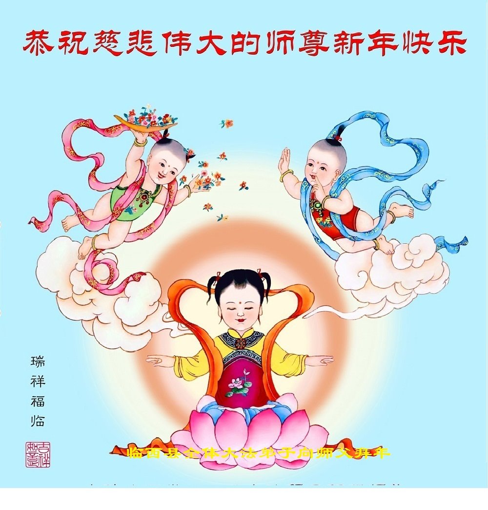 又一年即将过去,新的一年又开始了。在这一年里感谢师尊对大法弟子的慈悲保护。在这新旧交替之际,临西县全体大法弟子向慈悲伟大的师父致以最诚挚的祝愿:祝师尊新年快乐!师父您辛苦了!在新的一年里希望师父少一点操劳,多一份欣慰。临西大法弟子回继续履行大法弟子的责任,救度更多的众生。 临西县全体大法弟子向师尊合十! 师尊您辛苦了! 祝师尊新年快乐! 临西县全体大法弟子 叩谢师恩 河北省衡水市故城县大法弟子恭祝师尊新年快乐!